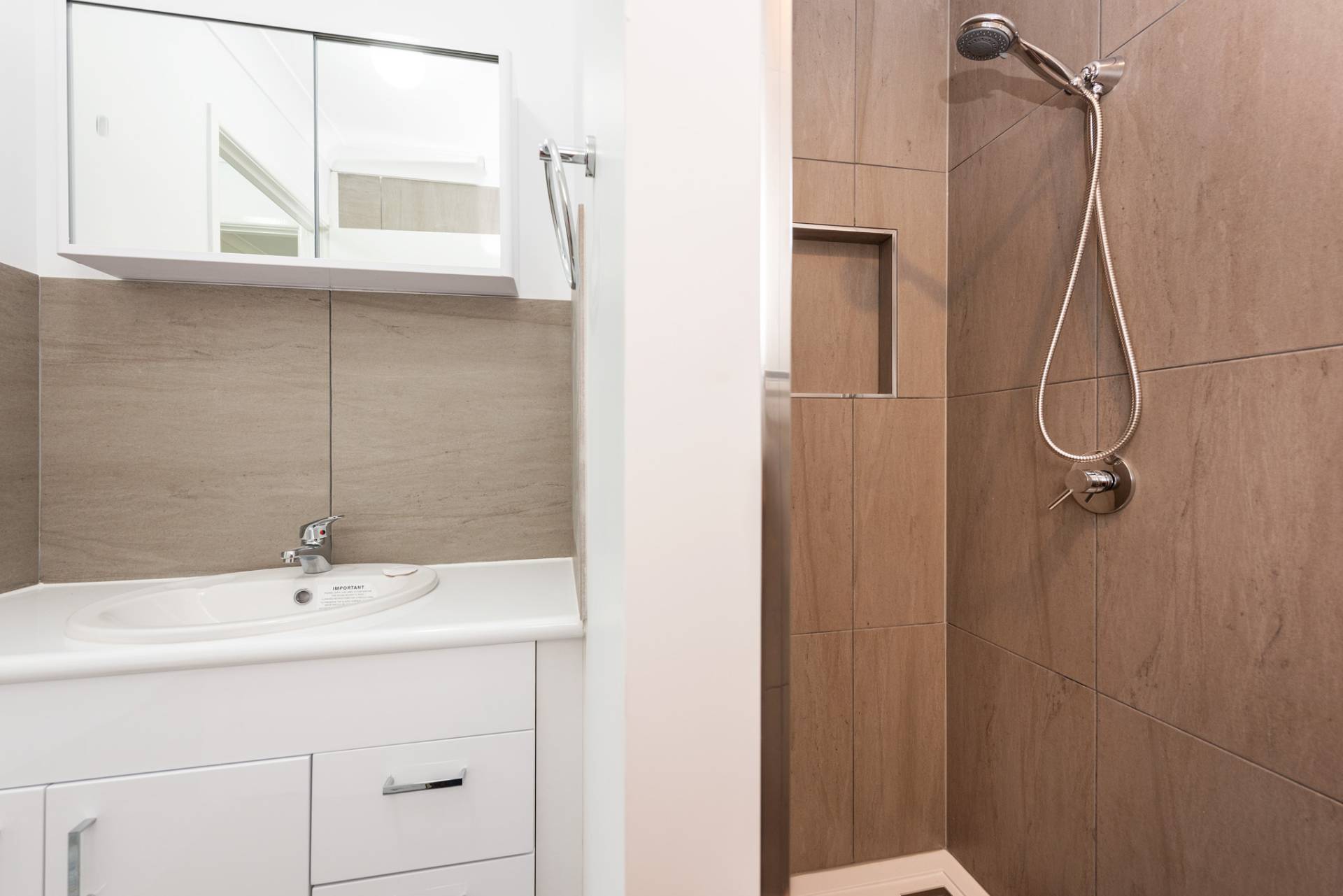 * Renovated bathroom with walk-in shower