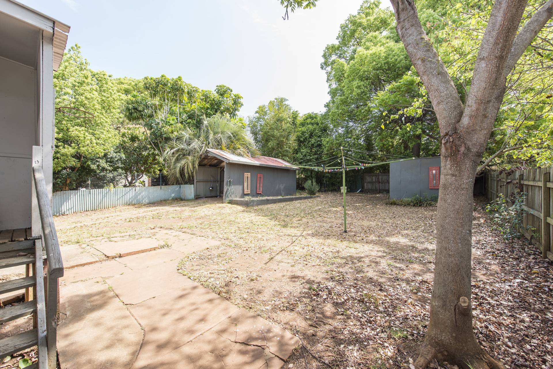 • Open garage + a storage shed