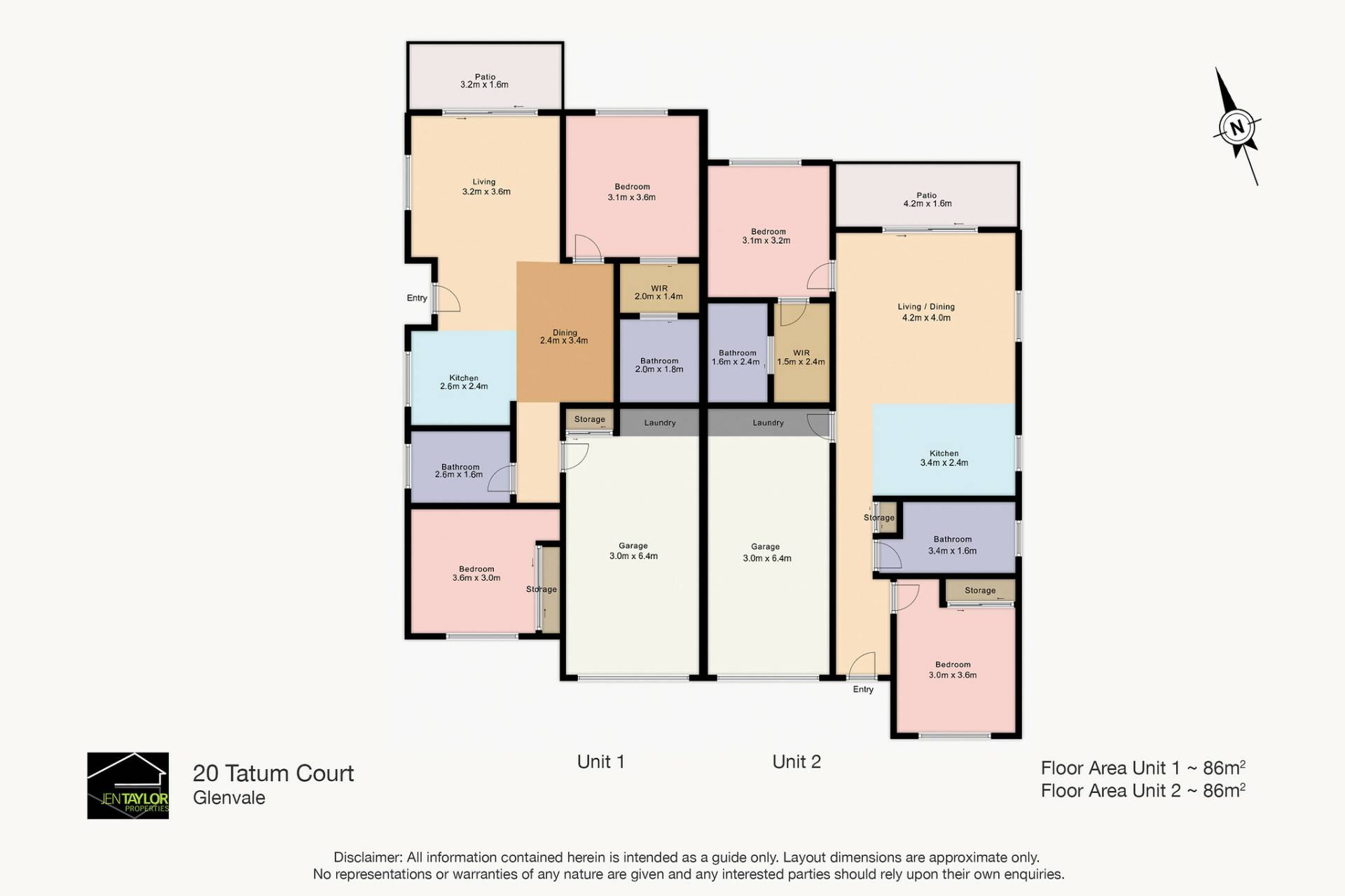 • Private courtyards – fully fenced & low maintenance. 586m2