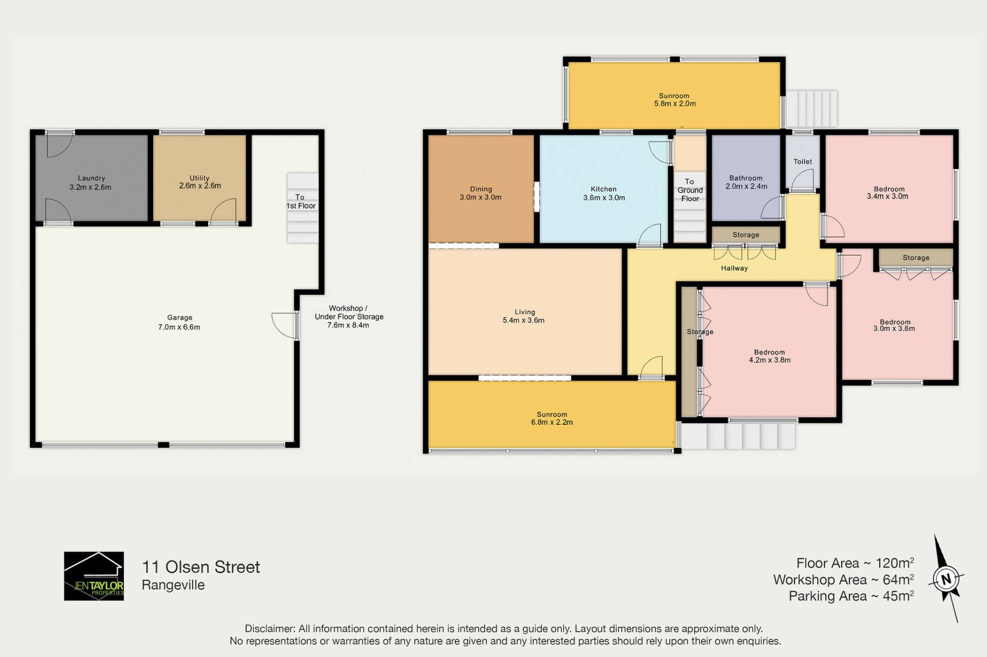 • Downstairs: laundry, store room + under house storage.
