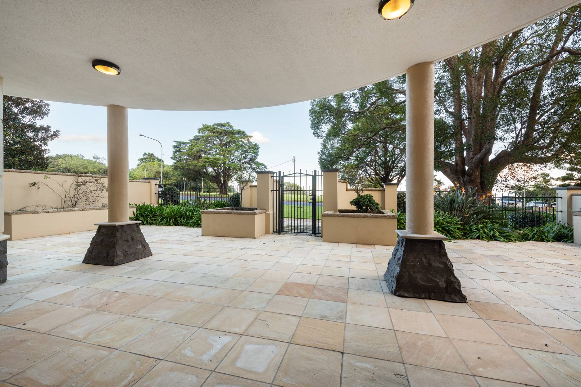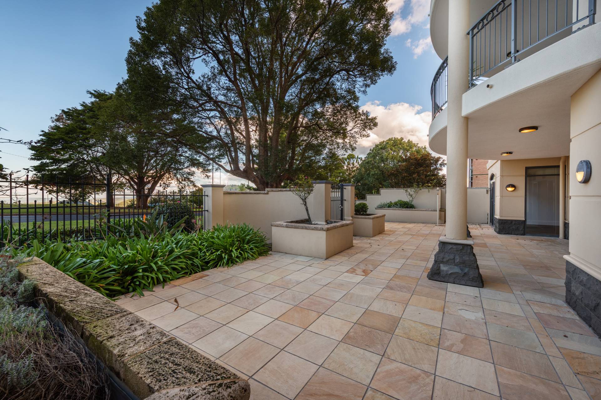 -    large exclusive use paved terrace with raised garden beds and access from the street
