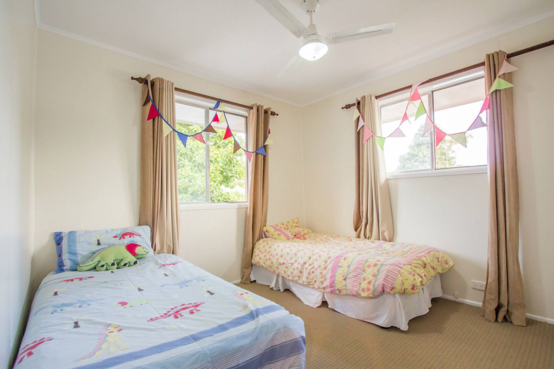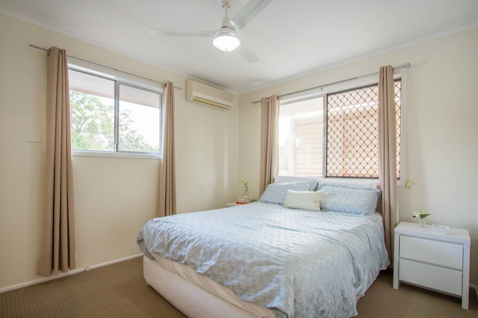 * 3 bedrooms. All have built in cupboards & master has air-con