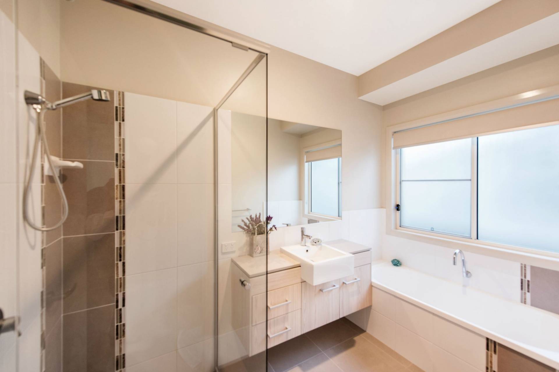 * Modern bathroom with separate bath and shower, separate toilet