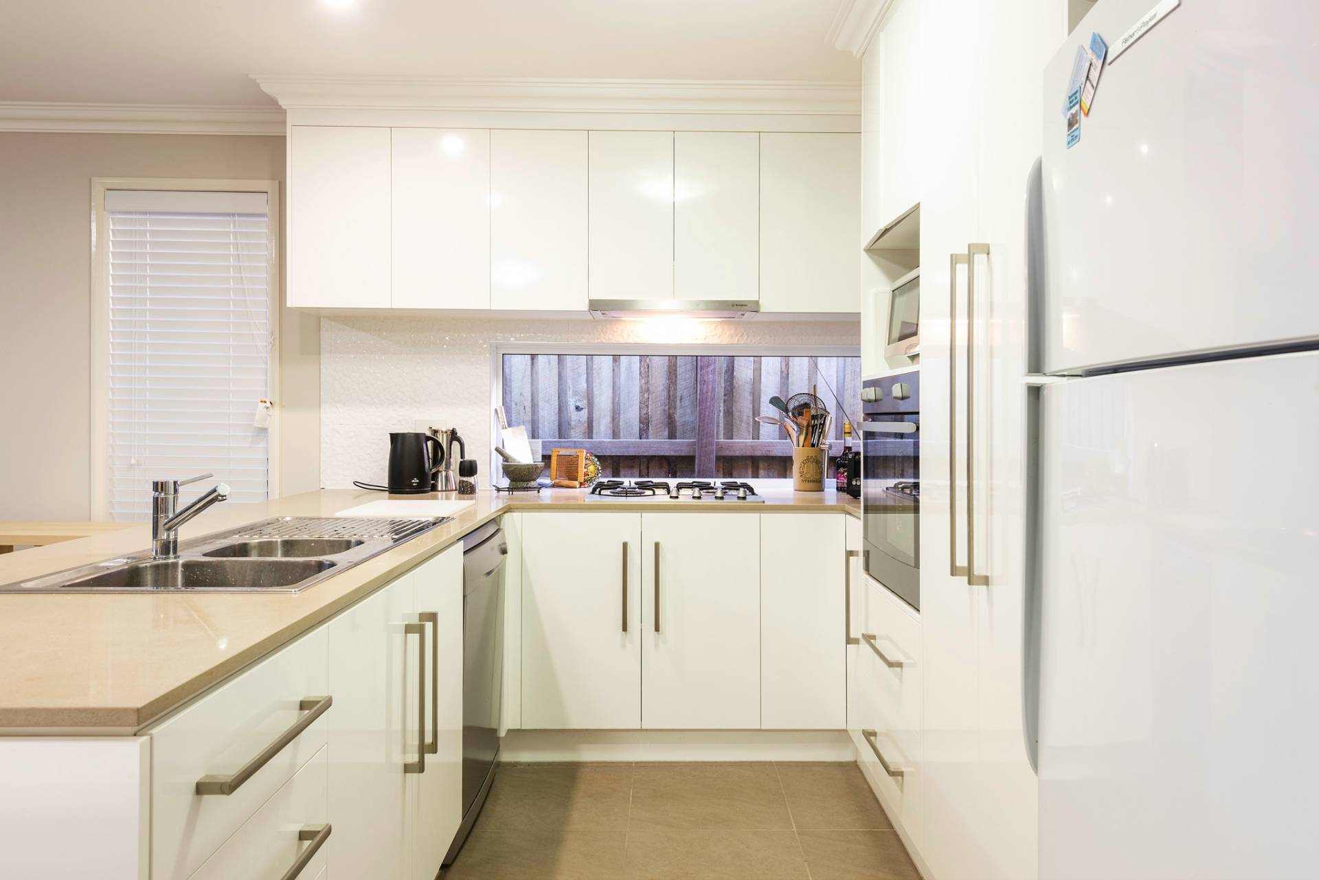* Chic kitchens with stone bench tops & gas cooking.