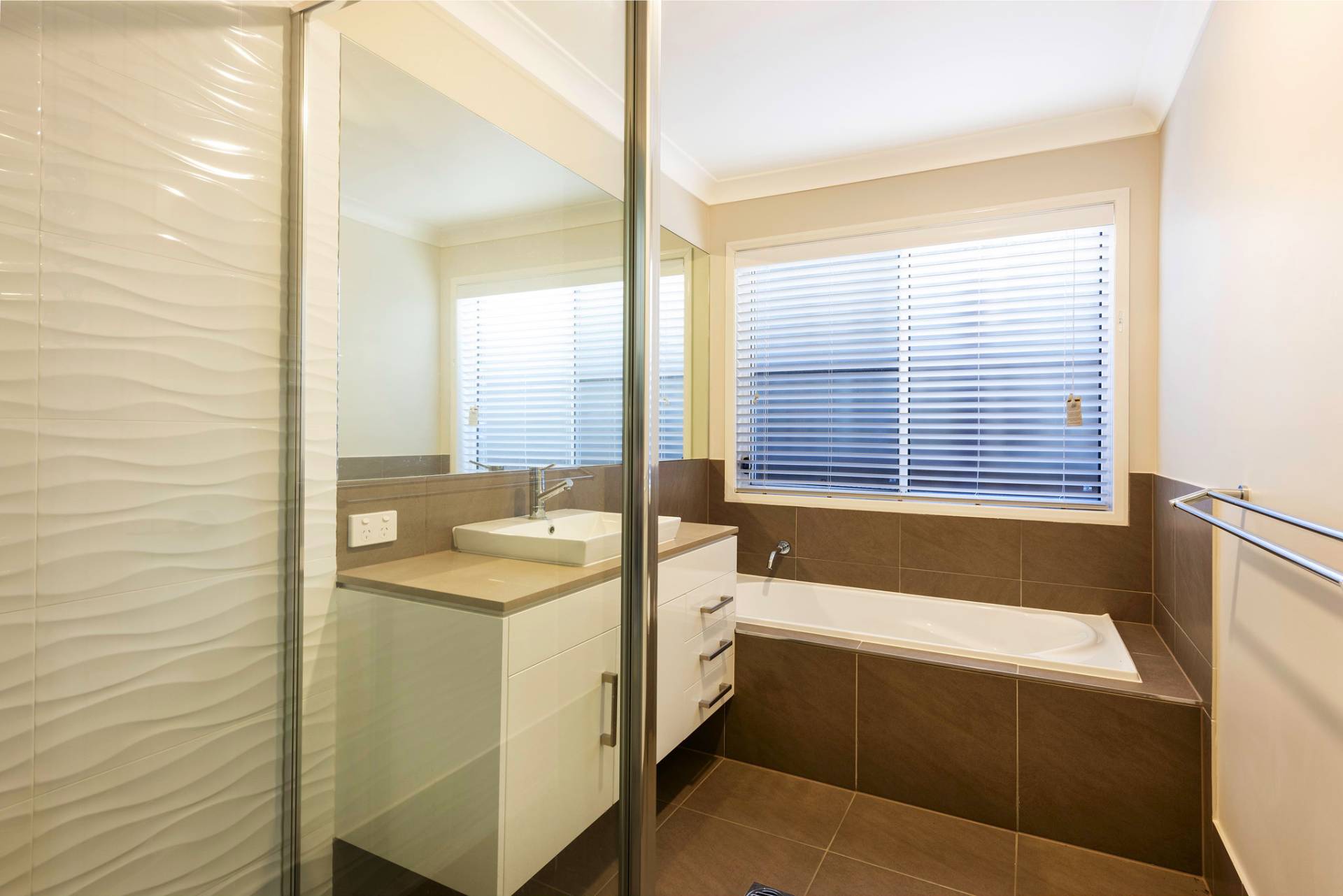 * Stylish bathroom with separate bath.