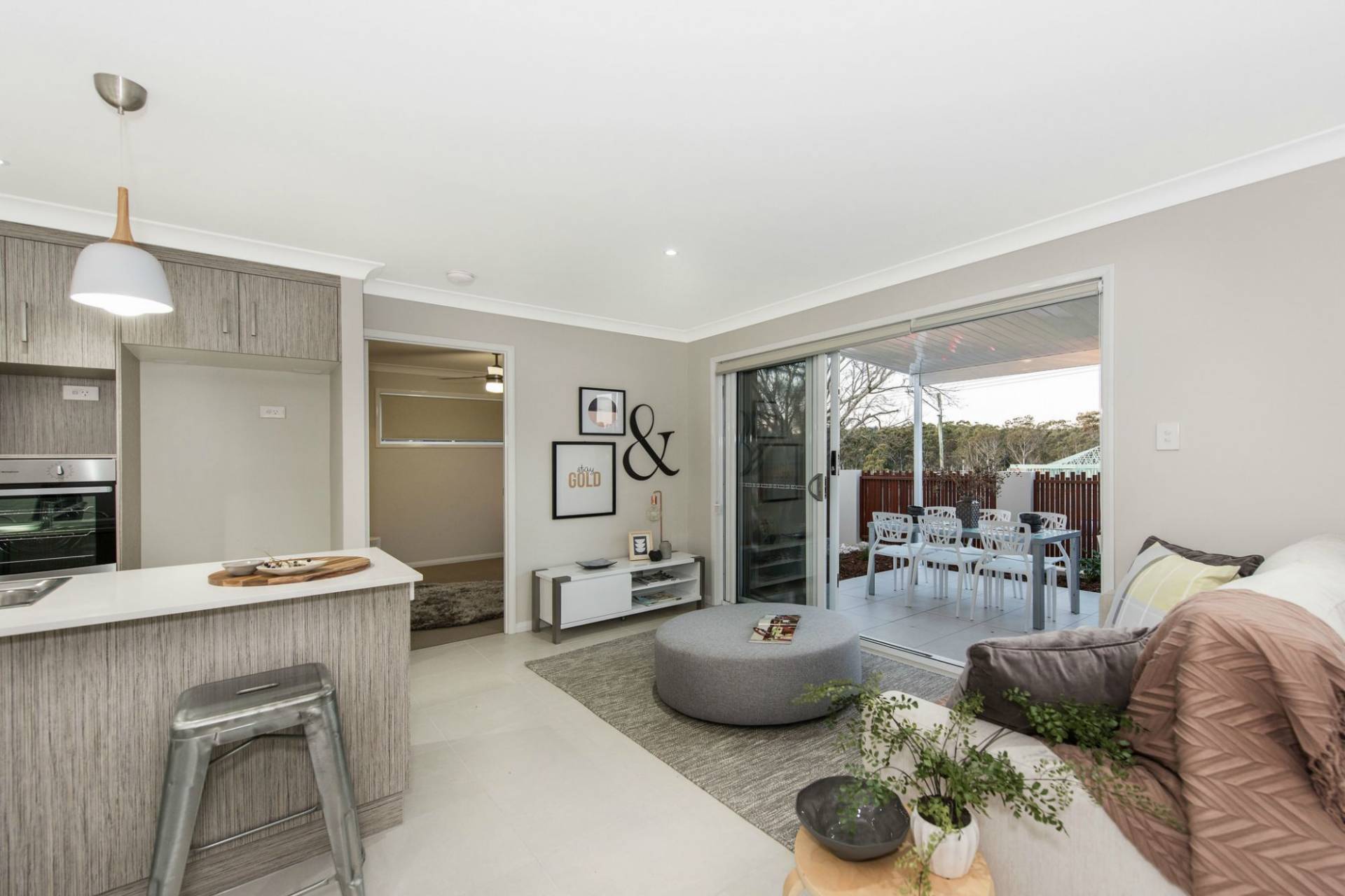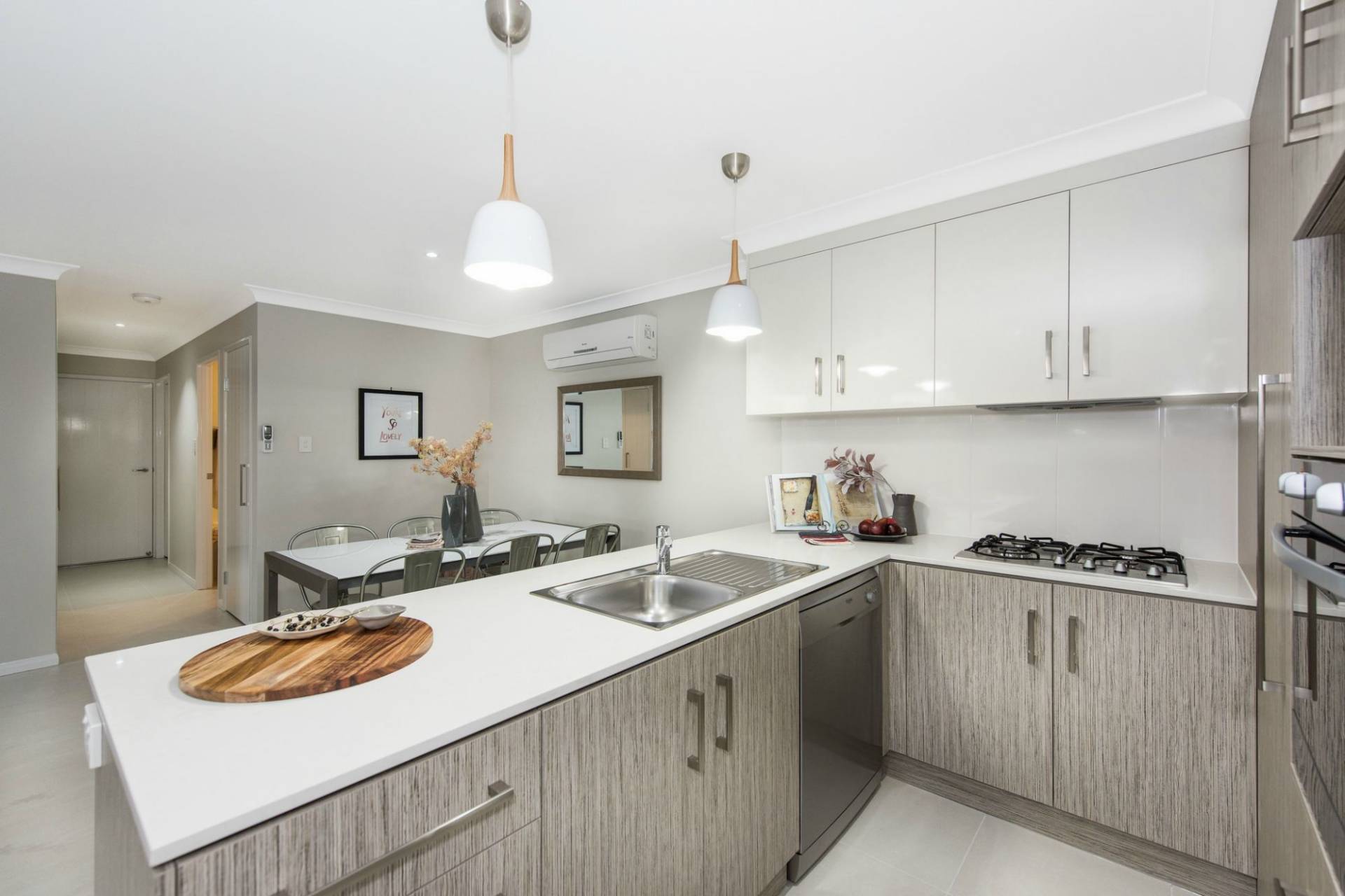 * Stylish kitchens with stone benchtops + gas appliances.