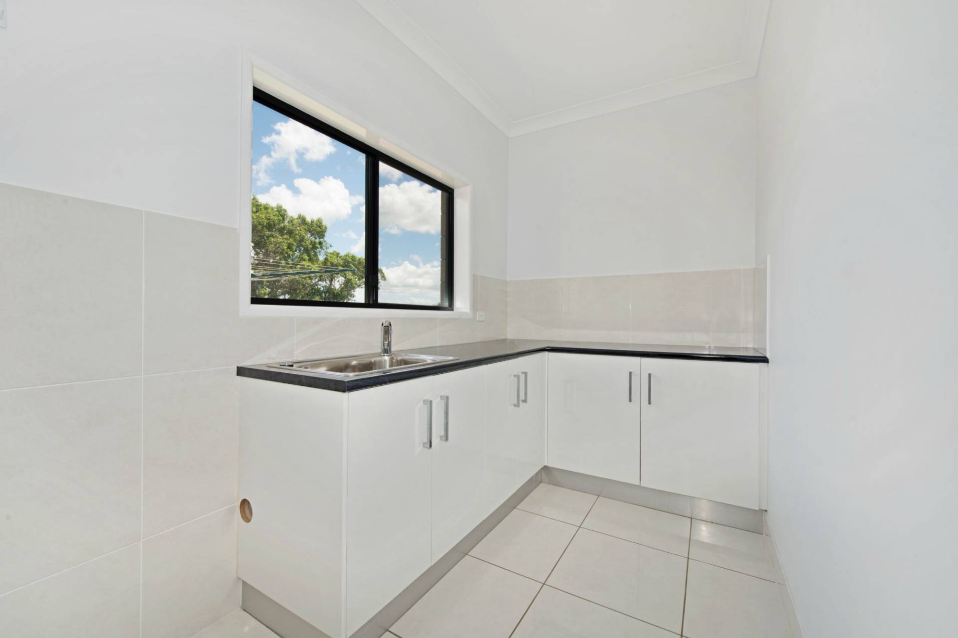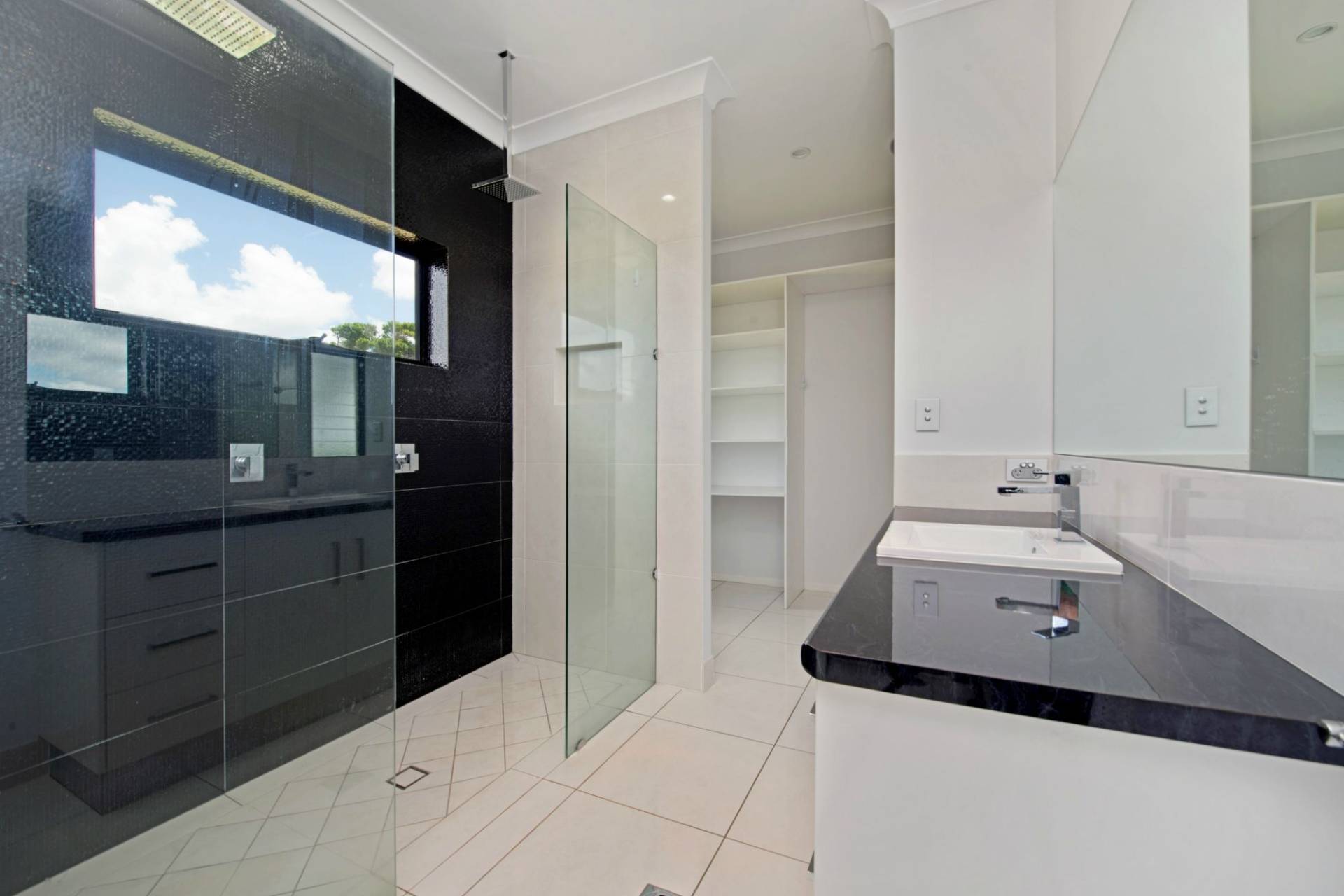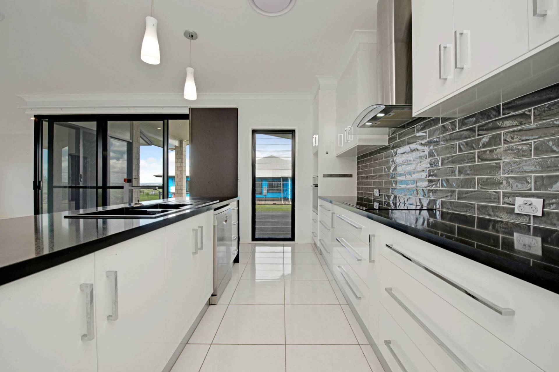 * Chefs kitchen with black stone benches & quality appliances including a dishwasher + a massive walk in pantry.