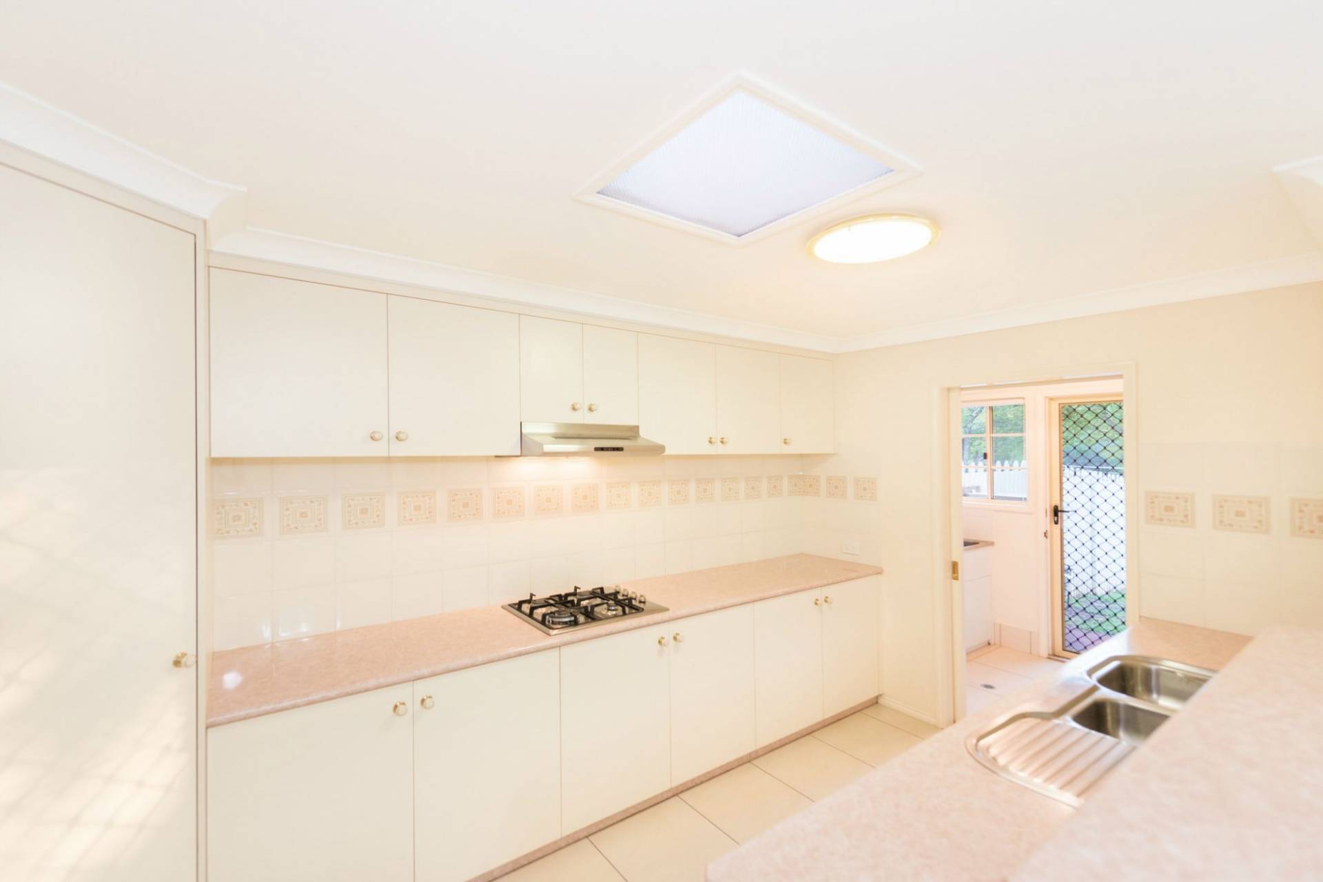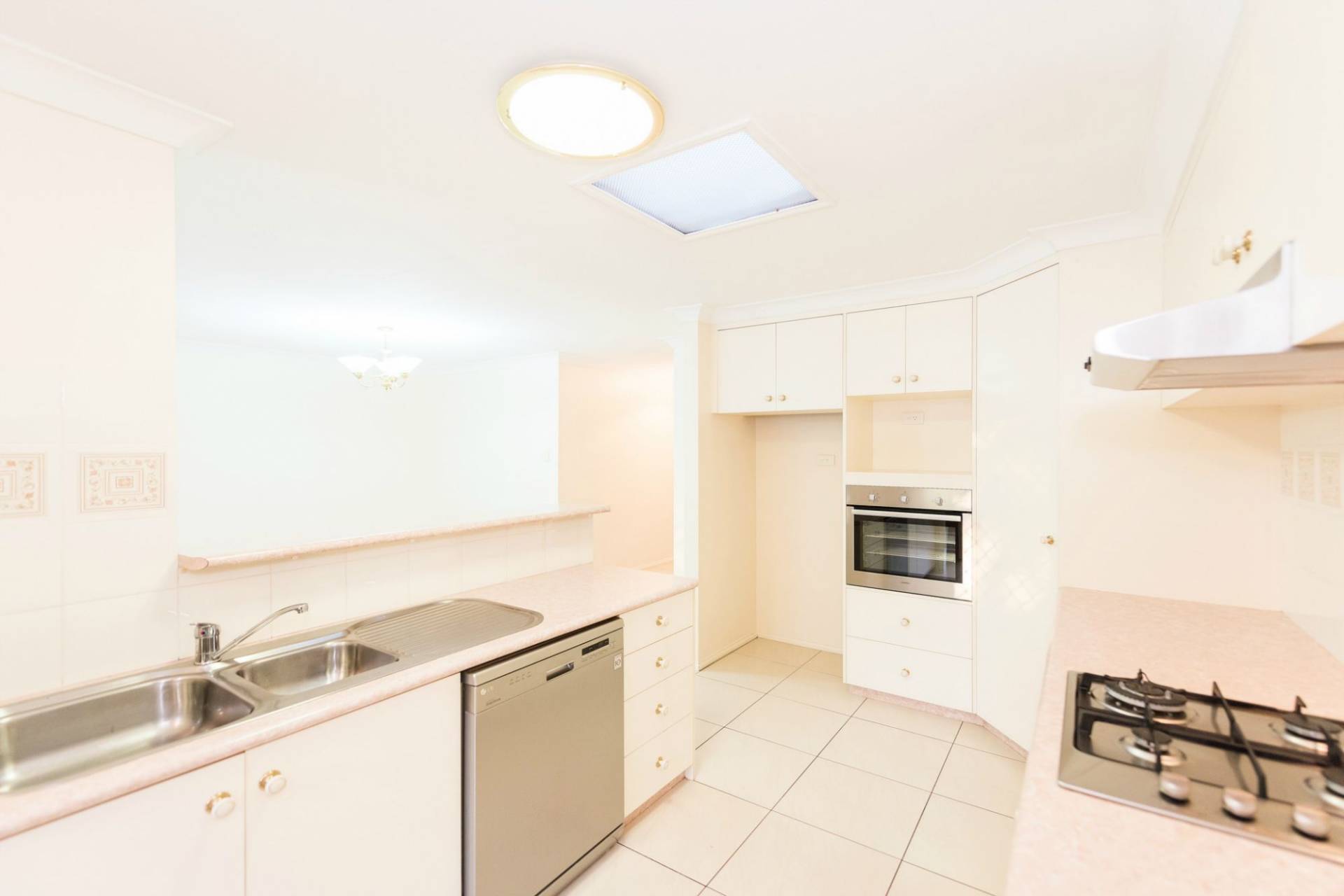 * Stylish kitchen with gas cooktop, dishwasher & large pantry.
