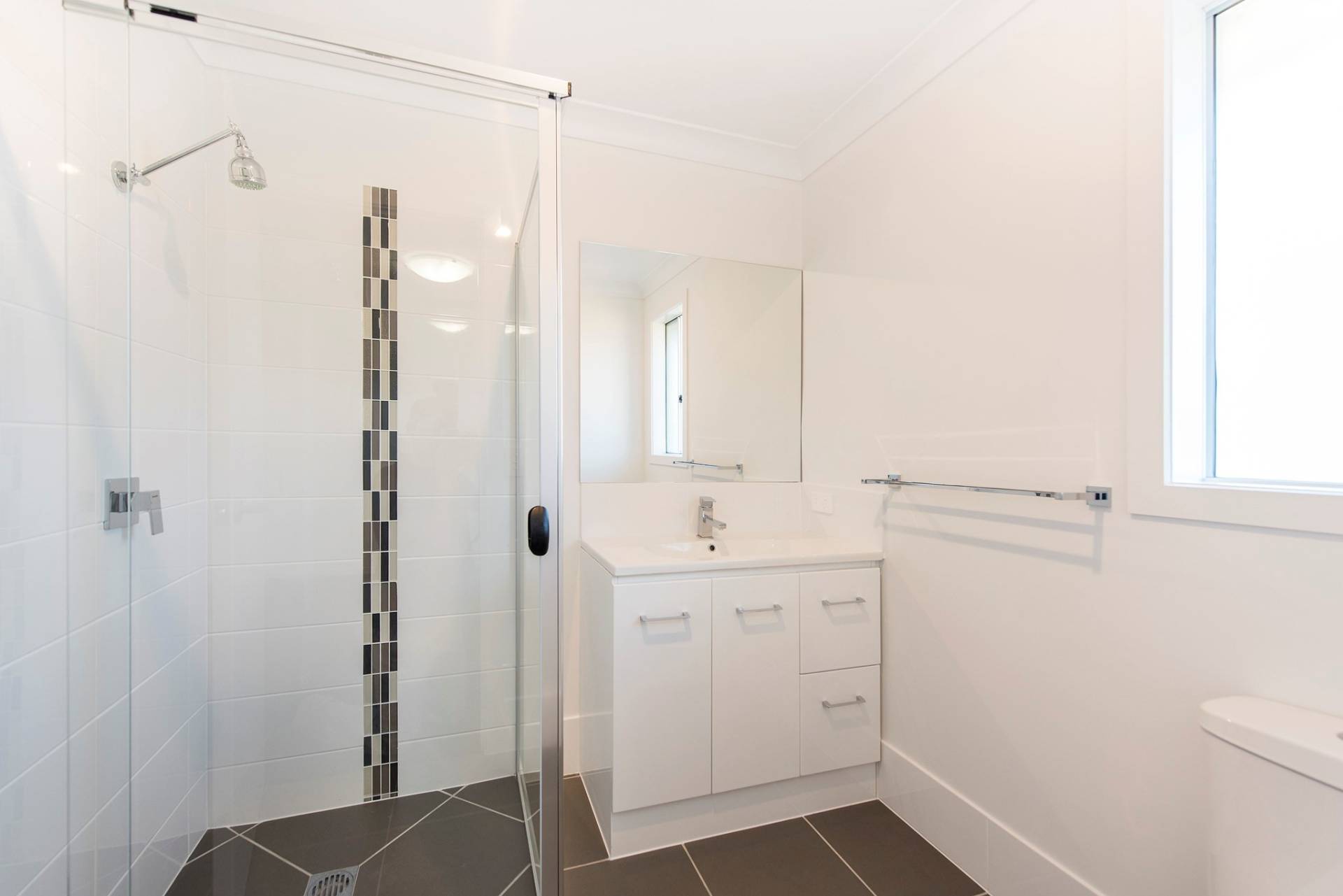 • Stylish main bathroom with bath and shower