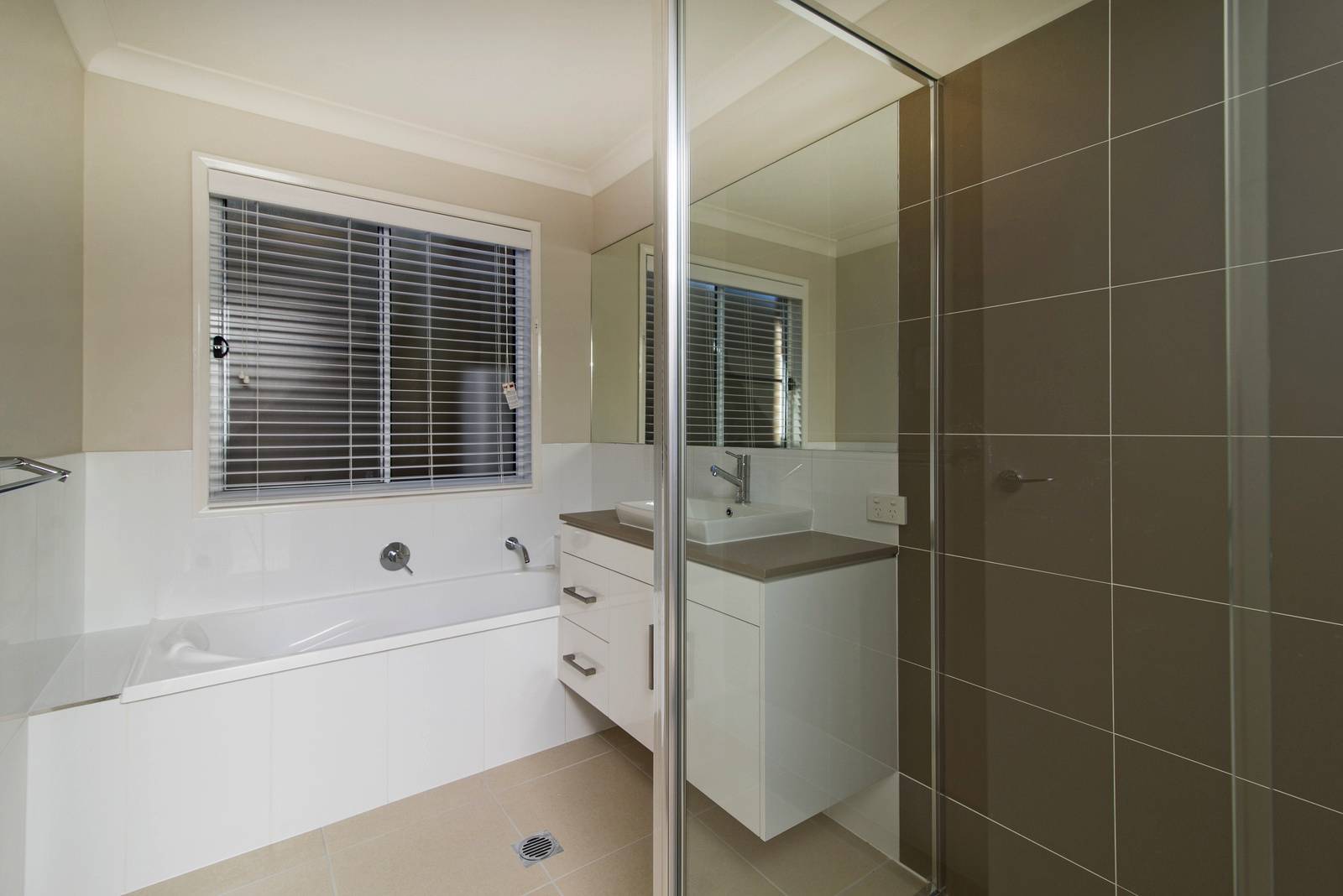 * Stylish bathroom with shower and bath. Separate toilet.