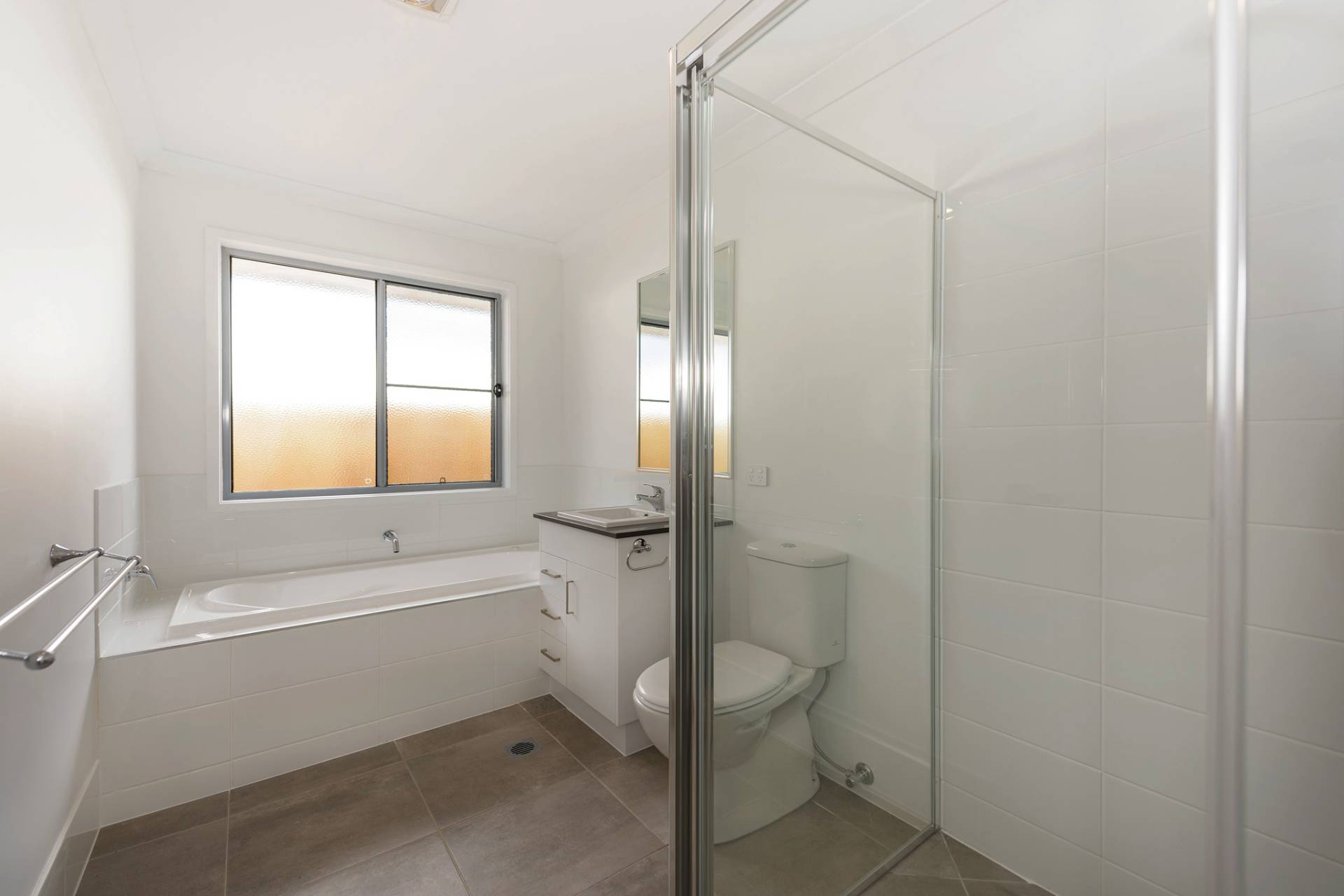 • Stylish main bathroom with bath and shower