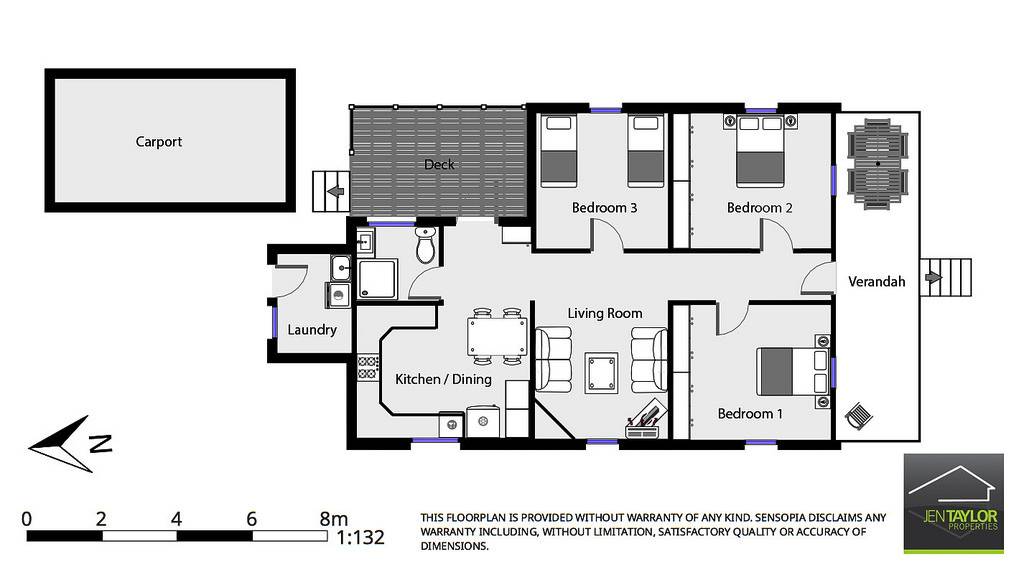 • Front verandah + rear deck.