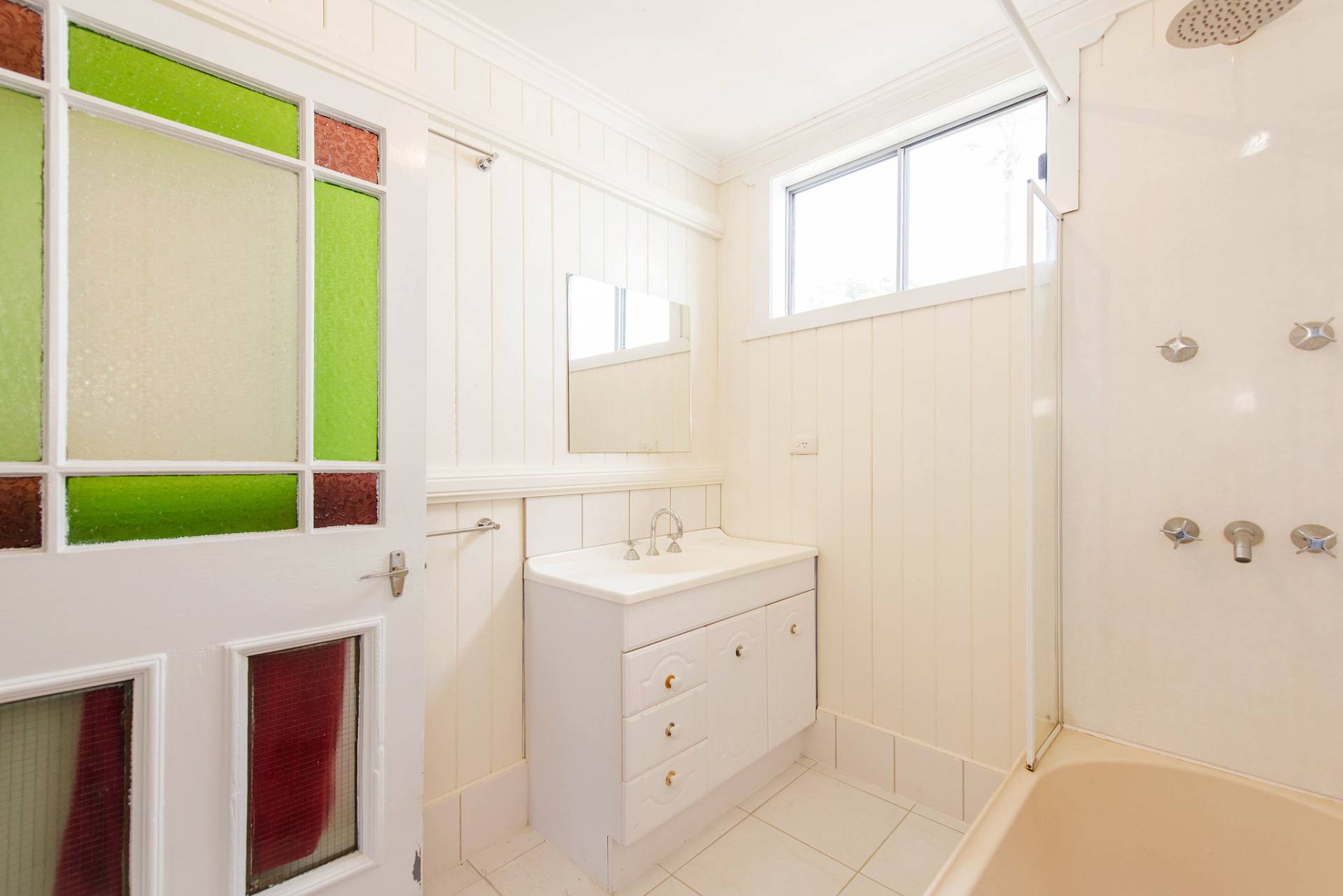* Bathroom with shower over bath.