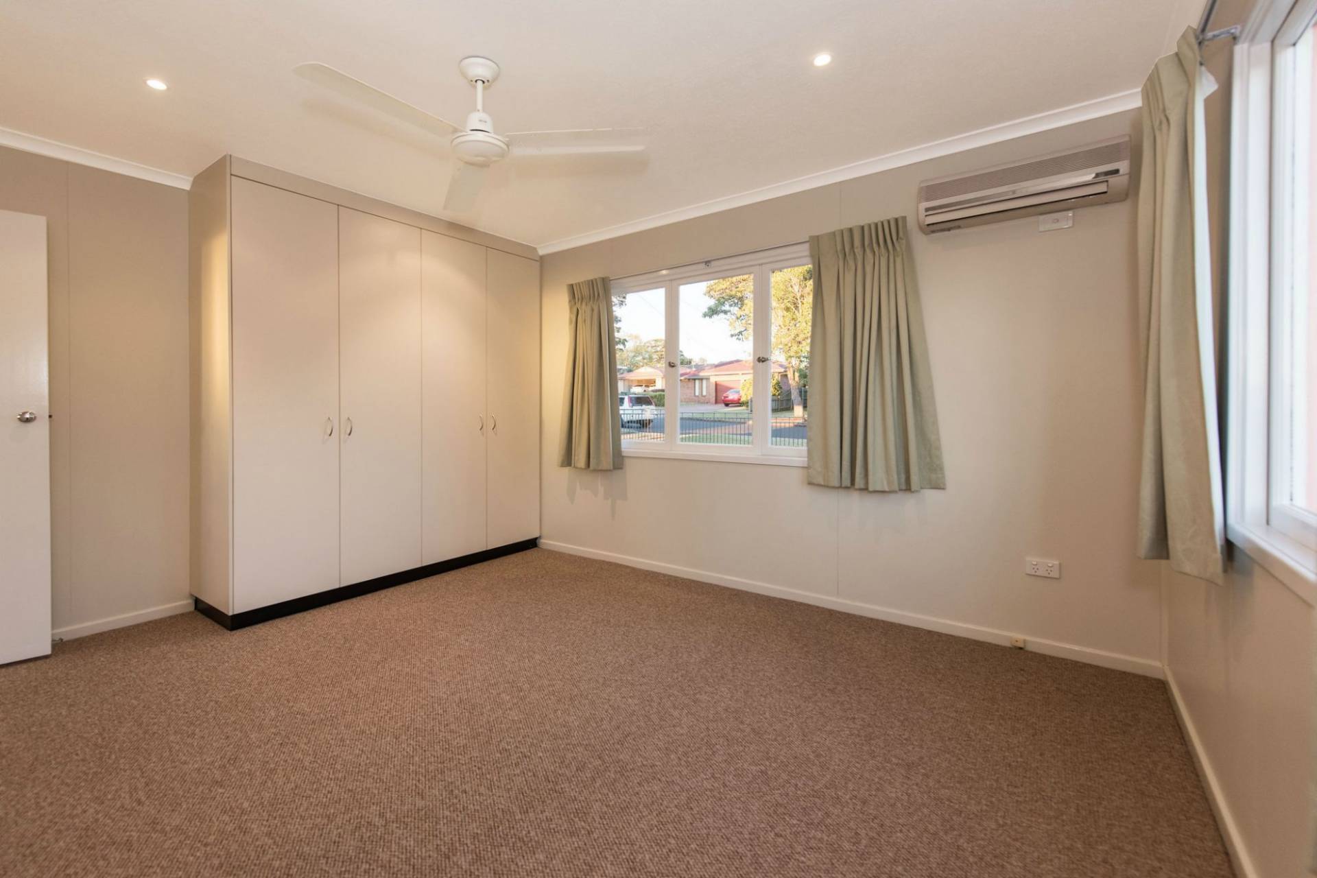 * 3 good sized bedrooms with ceiling fans, new carpet and built-ins to two of the bedrooms - the main with reverse cycle air