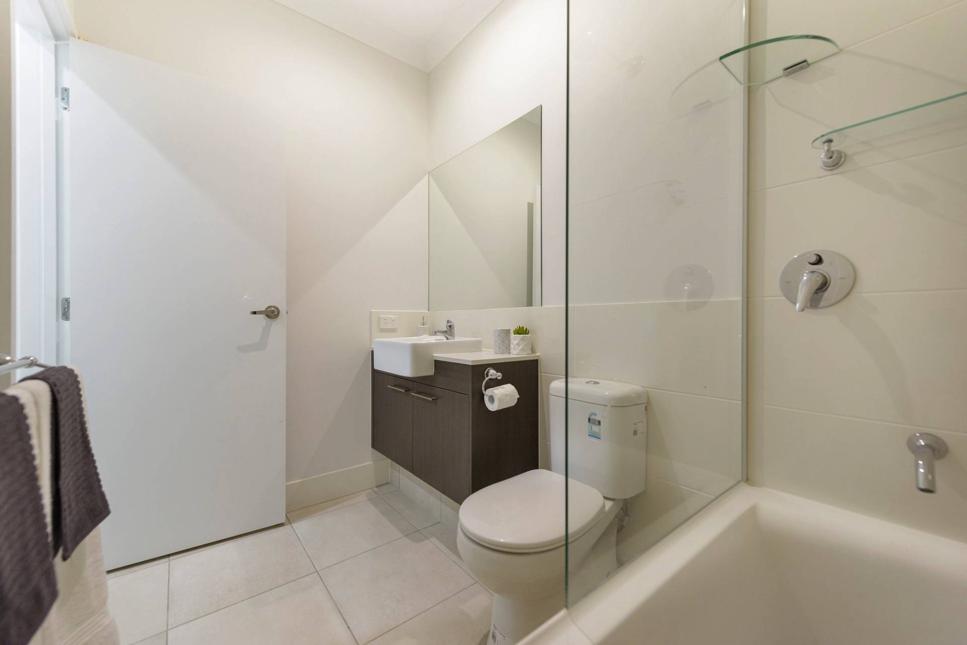 * Main bathroom with shower over bath