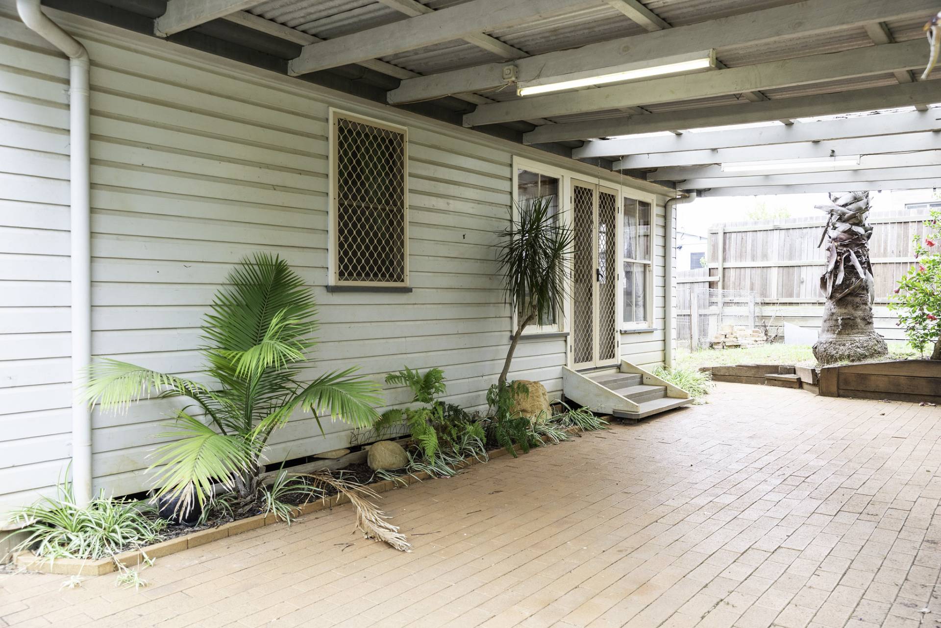 * Covered outdoor entertaining area.