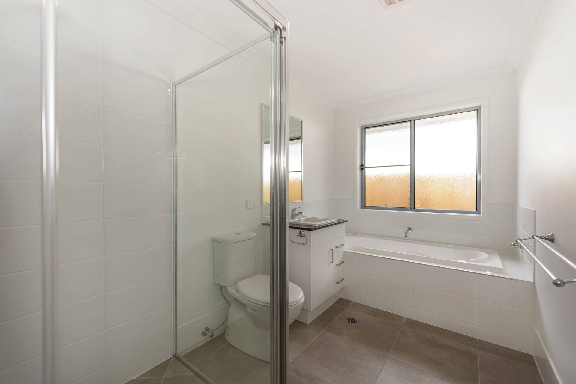• Stylish main bathroom with bath and shower