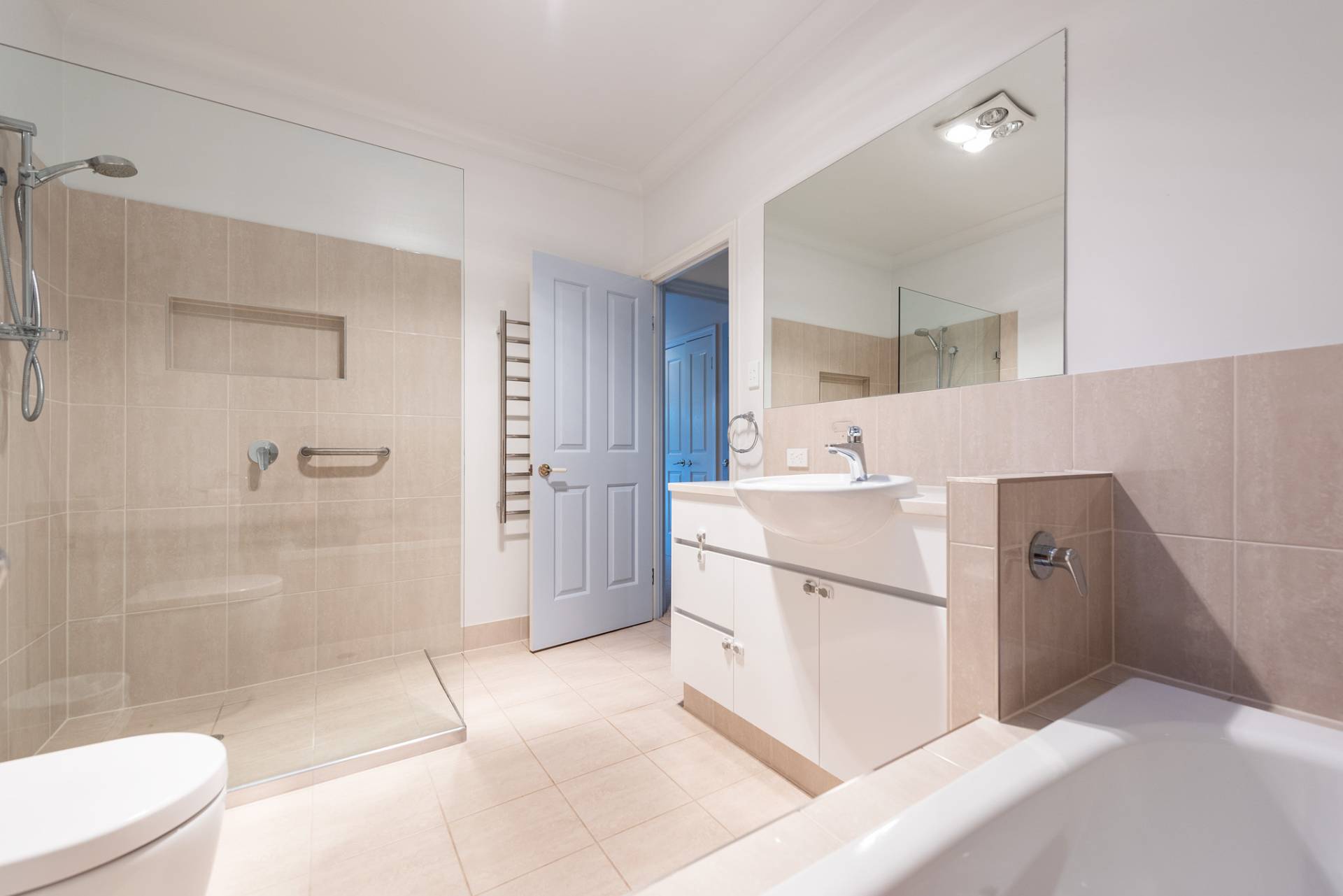 * Central modern main bathroom – separate shower & bath